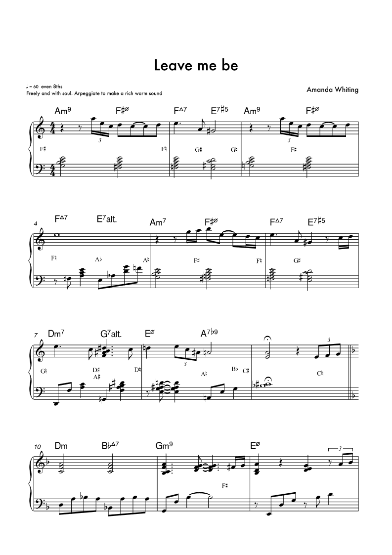 Leave Me Be, an original solo for pedal harp. “This melancholic piece has rich harmonies allowing the harpist to indulge in jazz sound,” says the composer.